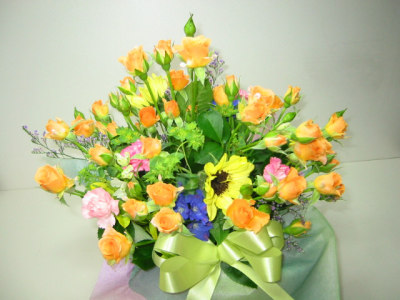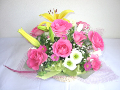 | 上の画像は全てサンプルです。季節によってバラの種類が変わりますのでお申込みの参考にして下さい。 バラの色はサンプル以外にも豊富に揃っていますので要望はご注文フォームの「その他ご要望」の欄にな んでもご記入願います。 価格は¥3,000(消費税込み)より承ります。 |