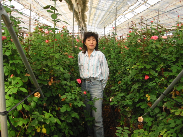 ハウスの中はバラの香りで一杯 |