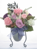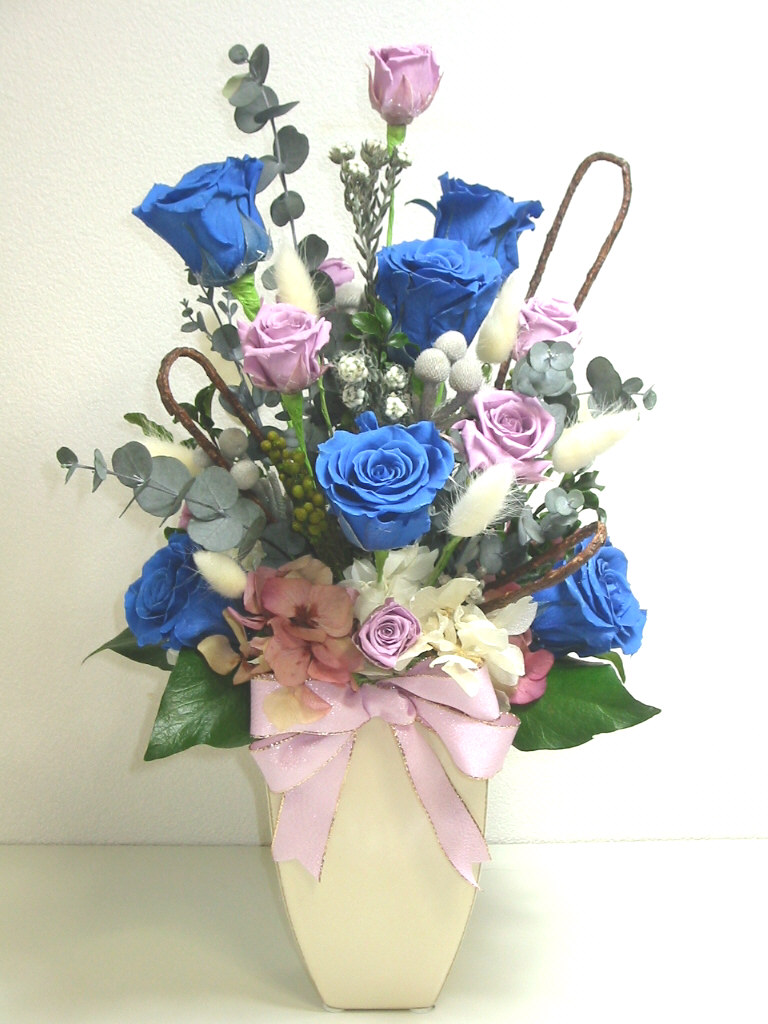 | ギフトのお花・卓上のお花・壁飾り・ブーケ・コサージ・トピアリー・リース等、生花と 変わりなく、いろいろな種類のアレンジを作る事が出来ます |
